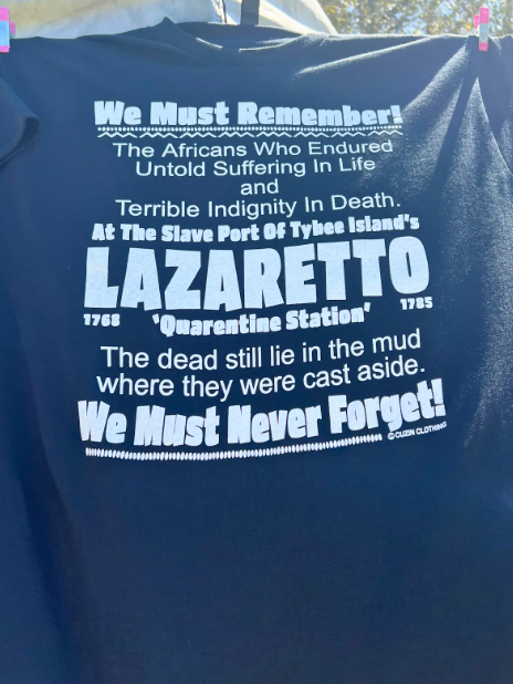 COVID-19 may have been the first time contemporary Westerners became familiar with the premise of quarantining, but this practice dates back to the 14th century as a common method for controlling the spread of disease.⁵ According to the historical marker database, A lazaretto or lazaret is a quarantine station for sea travelers. The term can be used to refer to places- more specifically, isolated islands or mainland buildings- or ships permanently at anchor. 40% of the enslaved people brought to the United States entered through Charleston and Savannah⁶, and all of those who entered via Savannah between January 1768 and October 1785⁷ had to pass through the Tybee Lazaretto. 2025 marked the fifth year that Lazaretto Day was commemorated on Tybee Island, Georgia. It is observed on March 25th, which is the United Nations’ International Day of Remembrance of Victims of Slavery and the Transatlantic Slave Trade. This commemoration is one of six annual commemorations initiated by the Tybee MLK Human Rights Organization, with the leadership of Julia and Mallory Pearce.