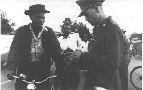 Policeman checking passes Eli Weinberg: ℅ UWC-Robben Island Museum photo by Mayibuye